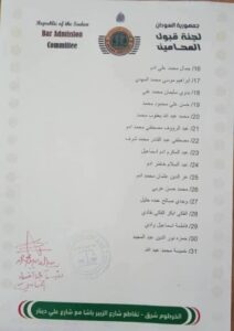 أصدرت لجنة قبول المحامين السودانيين، اليوم، القائمة الثانية بأسماء المحامين المتعاونين مع المليشيا، وقررت حرمانهم من الاشتغال بمهنة المحاماة، وذلك في إطار ما وصفته باتخاذ إجراءات قانونية ومهنية صارمة لحماية المهنة وصون رسالتها.