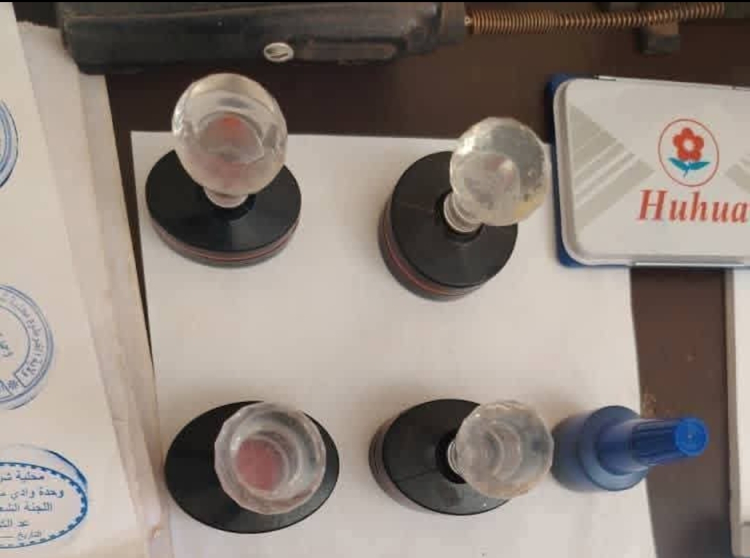 كما تم ضبط (13) ختماً بارزاً تعود لمحامين معروفين، وجهاز بيانات يُرجح أنه مسروق من أحد المجمعات الحكومية، إلى جانب كميات كبيرة من إسبيرات السيارات المتنوعة.