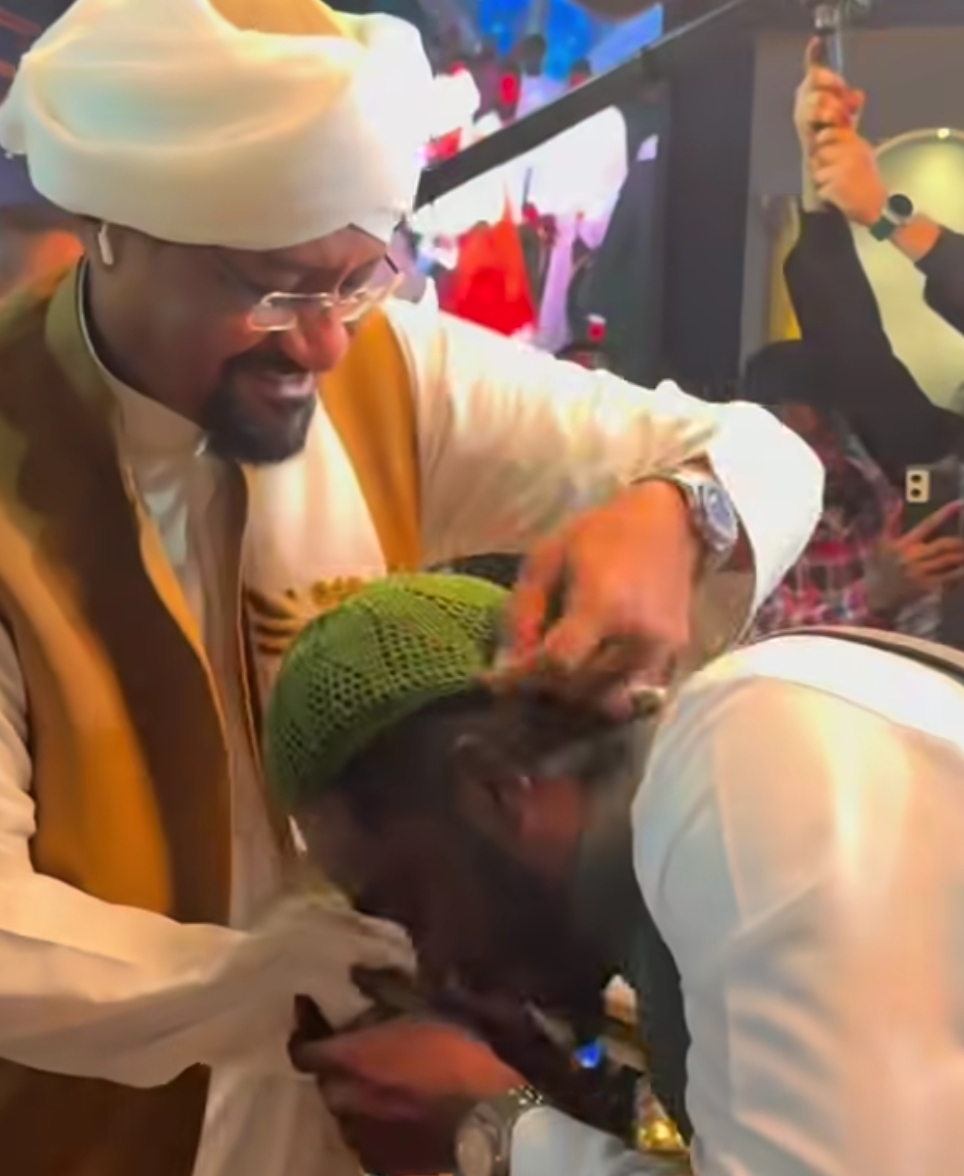 وأظهر الفيديو الفنان مأمون وهو يلقي بـعمامته على الأرض ويرفض ارتداءها، تأدبًا واحترامًا لمقام شيخه، في تصرّف نال إشادة واسعة من المتابعين، الذين اعتبروا المشهد تجسيدًا حيًا لقيم التواضع والوفاء لأهل العلم والتربية الروحية.