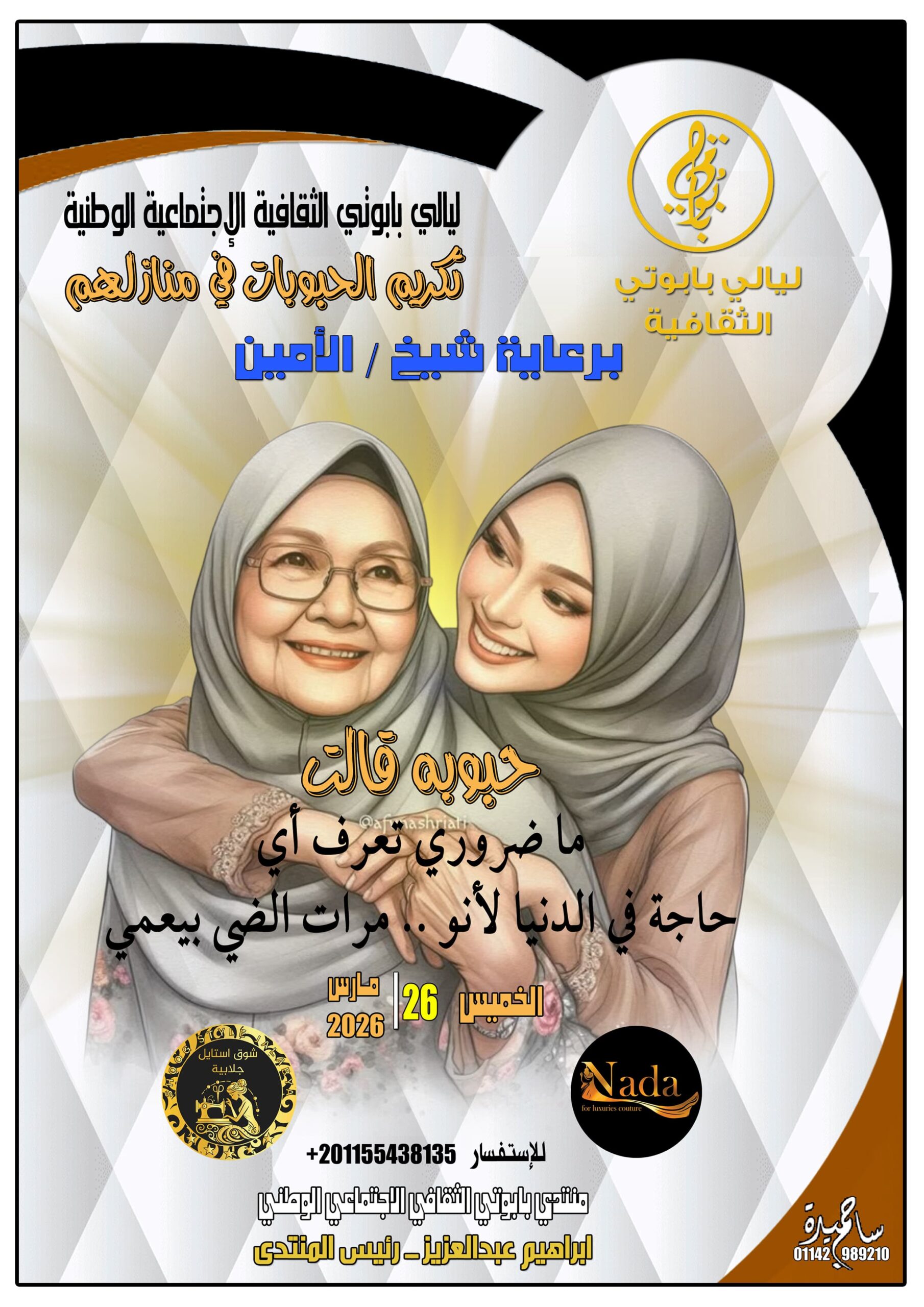 برعاية الشيخ الأمين عمر الأمين، أعلن رئيس منتدى بابوتي الثقافية الاجتماعية الوطنية الأستاذ إبراهيم عبدالعزيز عن تدشين برنامج تكريم الحبوبات بمنازلهن، في مبادرة اجتماعية تهدف إلى رد الجميل لكبيرات السن وتقدير عطائهن ودورهن في ترسيخ القيم السودانية الأصيلة.
