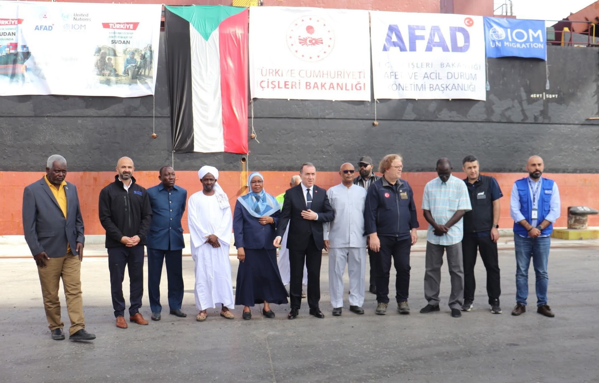 استقبل مفوض مفوضية العون الانساني الاستاذة سلوى آدم بنية ووكيل وزارة الموارد البشرية الاستاذ ابوبكر كوكو استقبلا سعادة سفير جمهورية تركيا لدى السودان السفير فاتح يلدز ونائب رئيس إدارة الكوارث والطوارئ التركية AFAD – ممثل المنظمة الدولية للهجرة IOM بحضور المدير العام لهيئة الموانئ البحرية مهندس مستشار جيلاني محمد جيلاني. وذلك لتدشين وصول 10 آلاف خيمة مقدّمة من جمهورية تركيا ضمن منحة إجمالية تبلغ 30 ألف خيمة سيتم وصولها على متن ثلاث سفن.