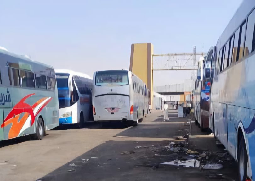 وقفنا على البصات السفرية الناقلة للشحنات والمحتجزة بالمعبر وكان الأولى أن تستغل تلك البصات في العودة الطوعية بدلا عن تغيير غرضها من نقل ركاب لنقل بضائع.