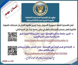 تعلن القنصلية العام للسودان بجدة لجميع طلابها الكرام بأن امتحانات الشهادة السودانية ستعقد في مباني جامعة جدة على النحو التالي: