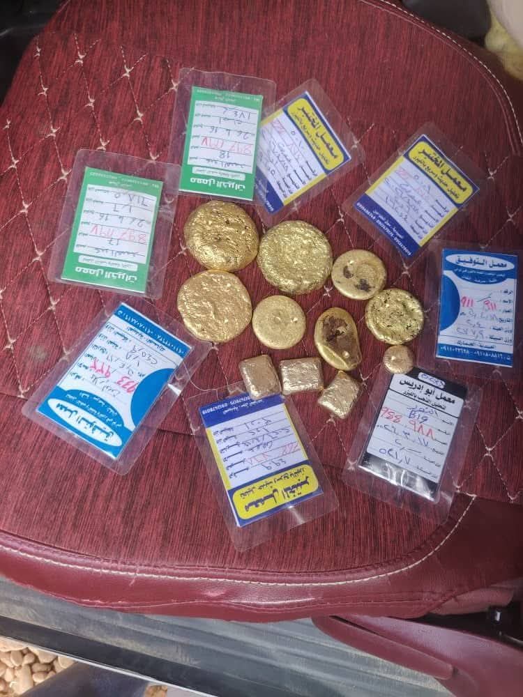 ضبط فريق ميداني متخصص من الإدارة العامة لتأمين التعدين، اليوم الثلاثاء، متهما، عند بوابة سوق طواحين دار مالي بمدينة عطبرة في ولاية نهر النيل، وبحوزته (11) سبيكة ذهب و(8) كروت ششنة، بوزن إجمالي بلغ (2 كيلو و620 جرام و8 حبات)، دون أي أوراق رسمية.