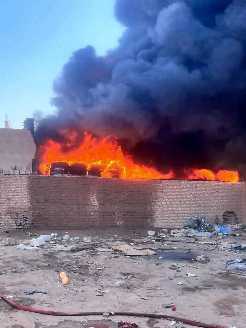 اندلع حريق ضخم، اليوم، في مخزن لإطارات السيارات بحي الشرقي بمدينة عطبرة بولاية نهر النيل، ما أدى إلى تصاعد كثيف لأعمدة الدخان وانتشار النيران على نطاق واسع داخل المخزن.