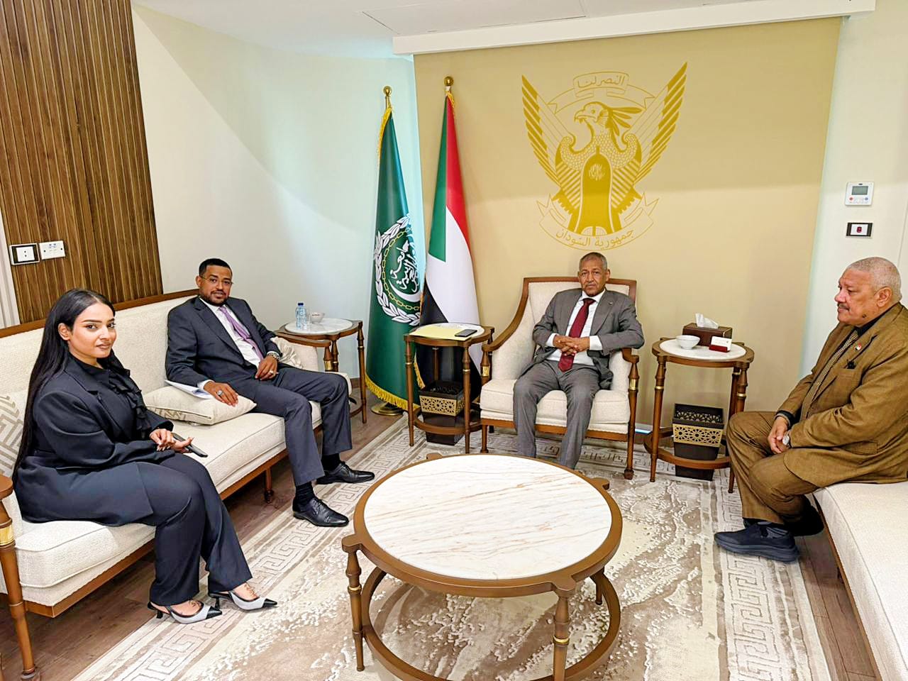 التقى سعادة سفير جمهورية السودان بالقاهرة، الفريق أول ركن عمادالدين عدوي، بمقر السفارة السودانية، ابراهيم بدرالدين رئيس مجلس إدارة مصنع النسر لتصنيع وتعبئة المواد الغذائية ، يرافقه مدير الإتصال المؤسسي للمصنع الأستاذة ثريا عبدالقادر.