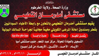 مخيم علاجي مجاني بمستشفى أم درمان في هذه الفترة